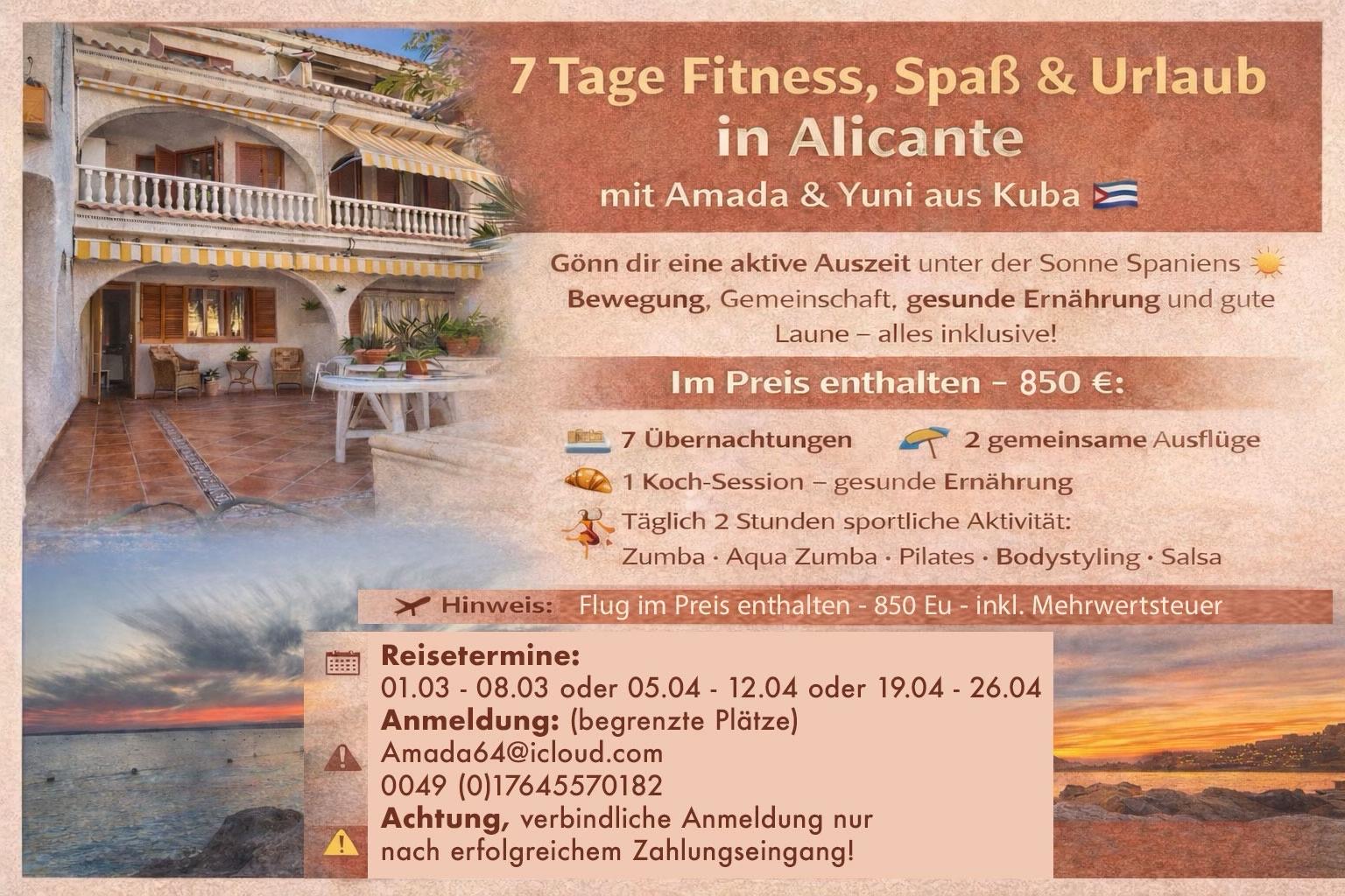 Anmeldung für Reise Alicante unter amada64@icloud.com